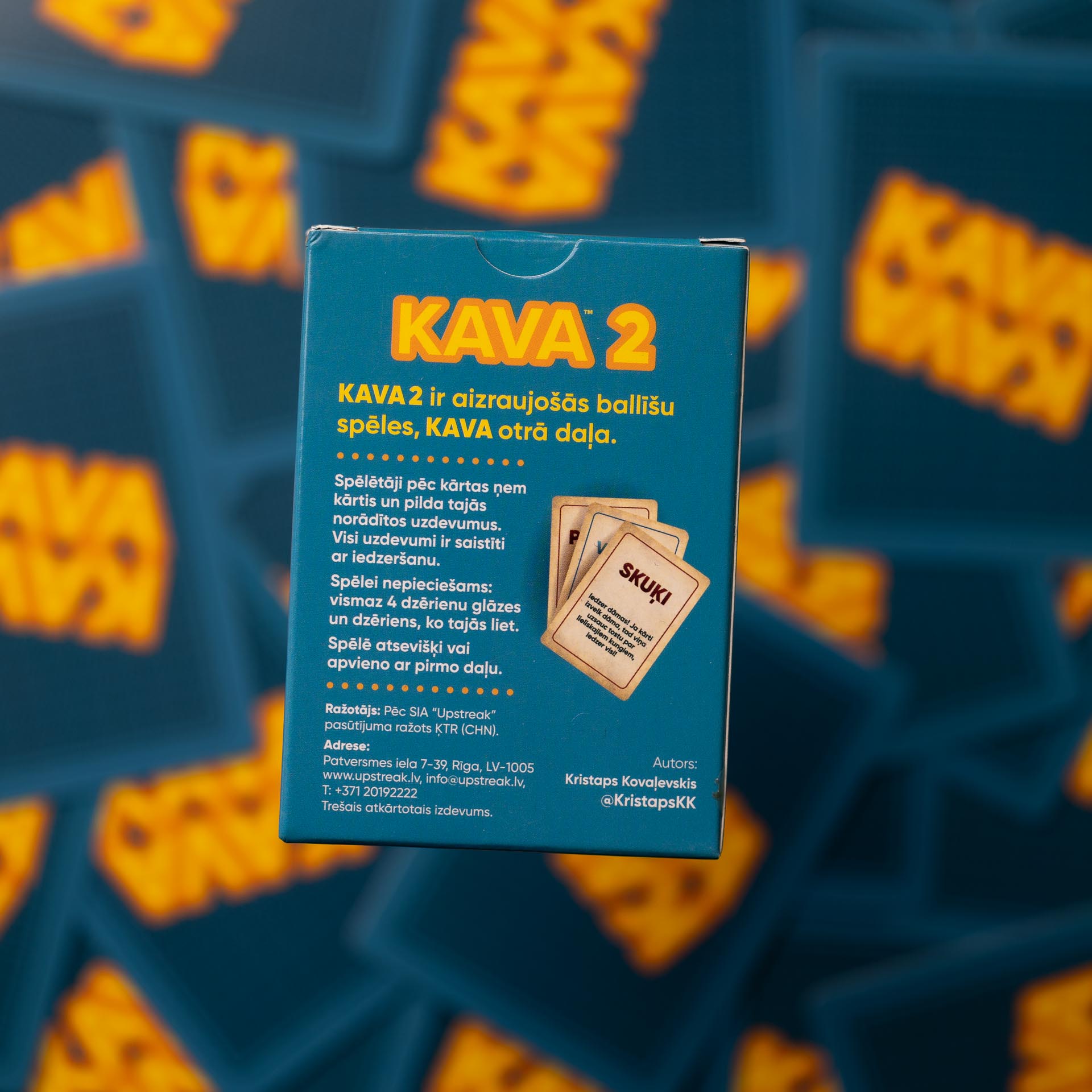 Populārās ballīšu spēles “KAVA” otrā daļa. Spēli esam papildinājuši ar jauniem uzdevumiem. Kava2 var spēlēt, kā atsevišķu spēli vai apvienot ar Kava1.